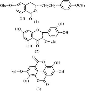 化学性质含鹤草酚(Agrimophol)[1]、正二十九烷、β-谷甾醇,伪绵马素(Pseudoaspidin)、R-(-)-仙鹤草酚B(R-(-)-Agrimol B),反式对羟基肉桂酸酯的同系物混合物[2]、新的异香豆精甙:仙鹤草内酯6-O-β-D-葡萄吡喃糖甙(Agrimonolide-6-O-β-D-glucopyranoside)(1)[3]、软脂酸、胡萝卜甙、2s,3s-(-)花旗松素-3-O-β-D葡萄吡喃糖甙(2s,3s-(-)-Taxifolin-3-Oβ-D-glucopyranoside)(2)[4]、鞣花酸4-O-β-D-吡喃木糖甙(Ellagic acid-4-Oβ-D-xylopyranoside)(3)、仙鹤草内酯(Agrimonolide)、鞣花酸(Ellagic acid)、委陵菜酸(Tormentic acid)[5,6]。