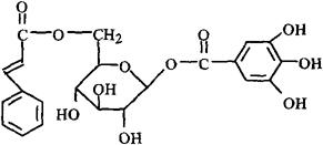 化学性质从各种大黄中已分离并鉴定的化合物达130余种,包括蒽醌及其甙类、蒽酮类、双蒽酮及其甙类、茋类及其甙和没食子酸酯、萘类衍生物、色满酮及其甙类、苯基丁酮类、鞣质类等。其中蒽醌类为其重要的代表性成分。游离蒽醌主要有:大黄酸(Rhein)、大黄素(Emodin)、大黄素甲醚(Physcion)、芦荟大黄素(Aloe-emodin)、大黄酚(Chrysophanol)等。蒽醌甙类主要有:大黄酚-1-葡萄糖甙、大黄酚-8-葡萄糖甙、大黄素-1-葡萄糖甙、大黄素-8-葡萄糖甙、大黄素甲醚-8-葡萄糖甙、大黄素甲醚-8-龙胆双糖甙、芦荟大黄素-8-葡萄糖甙、芦荟大黄素-3-葡萄糖甙、大黄酸-8-葡萄糖甙等。双蒽酮甙类化合物有番泻甙(Sennoside)A,B,C,D,E,F等。芪及其甙类化合物有土大黄甙(Rhaponticin)、土大黄甙元(Rhapontigenin)和去氧土大黄甙(Deoxyrhaponticin)等。大黄中所含多种鞣质既有可水解型鞣质,又有缩合型鞣质[4]。属水解型的鞣质及相关化合物有多种没食子酰葡萄糖和1-0没食子酰基-6-0-桂皮酰基-β-D-葡萄糖(1)等。属缩合型鞣质及其相关化合物有儿茶素、表儿茶素及其多聚体。此外大黄中还含有多种苯基丁酮甙类化合物等[1~3]。