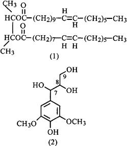 注:有的文献[15,19,20]命名为“苏式、赤式-1-C-丁香甘油”,且列于薏苡仁成分下。