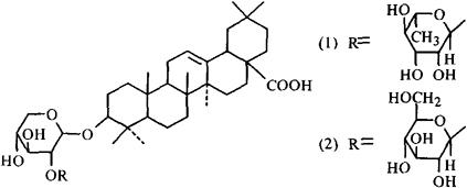 化学性质含皂甙、生物碱等[1]和Giganteaside(1)、Qlaccidin B(2)[2]。
