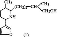 化学性质附 同属植物日本萍蓬草(Nuphar japonicurn DC.)根中含萍蓬草定(Nupharidine)、去氧萍蓬草定(Deoxynupharidine)、萍蓬草胺(Nupharamine)、去水萍蓬草胺(Anhydronupharamine)、去氧海狸碱(Deoxycastoramine)、裂环二氢海狸碱(Secodihydrocastoramine)(1)[1~3];另外尚含可水解鞣质:没食子鞣质(五倍子鞣质)(Gallotannin)Ⅰ、Ⅱ、6-O没食子酰葡萄糖、2,3,4,6-四-O-没食子酰葡萄糖[4,5]等;新近,又分得6个化合物,分别命名为萍蓬草碱(拟)(Nupharin)A,B,C,D,E,F[6,7]。