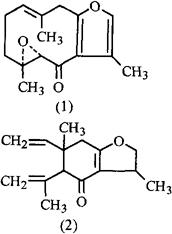 化学性质莪术(C.zedoaria)含挥发油1%~1.5%,油中主要为倍半萜烯类:蓬莪术环氧酮(Zederone)(1)、蓬莪术酮(Zedoarone)(2)、蓬莪术环二烯(Furanodine)、蓬莪术烯(Curzerene)、蓬莪术环二烯酮(Furanodienone)、异蓬莪术环二烯酮(Isofuranodienone)、蓬莪术烯酮(Curzerenone)、表蓬莪术烯酮(Epicurzerenone)、姜黄二酮(Curdione)、姜黄醇酮(Curcolone)、姜黄环氧薁烯醇(Curcumenol)、原姜黄环氧薁烯醇(Procurcumenol)、异姜黄环氧薁烯醇(Isocurcumenol)、姜黄环氧薁醇(Curcumol)、姜黄薁二醇(Curcumadiol),姜黄素(Curcumin)、去氢姜黄二酮[1]。干品含淀粉约64%[2]。其它品种的莪术挥发油成分各有差异[3~6]。