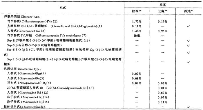 历史:珠子参原名珠参,载于《纲目拾遗》,赵学敏谓:“按珠参本非参类,前未闻有此,近年始行,然南中用之绝少,或云来自粤西,是三七子,又云草根;”又引《书影丛说》所载:“云南姚安府亦产人参,其形扁而圆,谓之珠儿参,”与今珠子参药材外形及产地相符。另外,《植物名实图考》也载有珠子参,据何景等《中国植物志》(五加科)考证其为桔梗科党参属植物Codonopsis forrestii Diels,与本品无关。