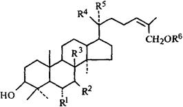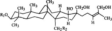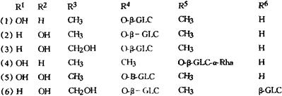 全草含达玛烷型三萜甙;合子草甙(拟)(Actinostemmosides)A(1),B(2).C(3),D(4),G(5),H(6)[2,3]。还有两个新的巴卡烷型(Baccharane)型三萜甙,被称作合子草甙(拟)E,F[4]。
