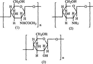 蟹的外壳含有多量甲壳质(壳多糖,几丁质(hitin)(1),为聚-2-乙酰胺基2-脱氧-D-吡喃多糖以β-(1-4)糖苷键连成一种线型高分子多糖,甲壳质经浓碱水解脱去乙酰基后即为壳聚糖(Chitosan)[1~3](2),其结构与纤维素(Cellulose)(3)类似。
