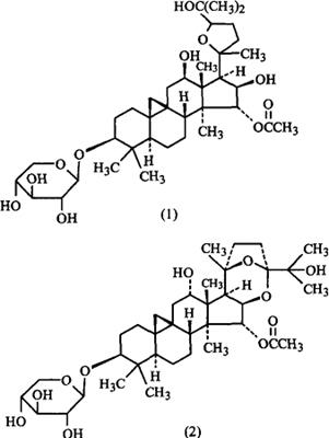 化学性质含铁破锣皂甙Ⅲ(1)、Ⅳ(2)(Beesioside Ⅲ,Ⅳ)[1、2]、升麻醇木糖甙、升麻甙(Cimicifugoside)与异阿魏酸等[3]。