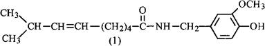 化学性质果实含辣椒素(Capsaicin)(1)、二氢辣椒素(Dihydrocapsaicin)、降二氢辣椒素(Nordihydrocapsaicin)、高辣椒素(Homocapsaicin)、高二氢辣椒素(Homodihydrocapsaicin)[1,2]、隐黄素(Cryptoxanthin)[3]、辣椒红素(Capsanthin)、苯酚窈焖(Capsorubin)、胡萝卜素(Carotene)、维生素C、柠檬酸、酒石酸、苹果酸[4]。种子中含辣椒甙、辣椒新甙[5]、龙葵碱(Solanine)、龙葵胺(Solanidine)、澳洲茄边碱(Solamargine)、澳洲茄胺(Solasodine)、澳洲茄碱(Solasonine)[6]。