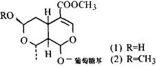 化学性质果实含环烯醚萜甙[1];莫罗忍冬甙(Morroniside)(1)、7-0-甲基莫罗忍冬甙(7-0-Methylmoyroniside)(2)、当药甙(Sweroside)及番木鳖甙(Logonin);此外尚含乌苏酸、酒石酸、苹果酸、没食子酸皂甙多种无机及氨基酸等[2,4,5]。