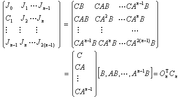 CAiB 所给出的马尔可夫参数与G(z)之间的关系即符合上述Z变换的关系。由马尔可夫参数{Ji}构成的汉克尔矩阵Hn为