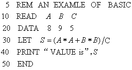 基本BASIC用 BASIC语言编写的程序称为BASIC源程序,简称BASIC程序。一个BASIC程序由一系列语句组成。语句表示计算机要执行的操作。一般一行写一个语句。语句格式类似于FORTRAN语言,由英文单词、数字和符号组成。每个语句有三个部分: