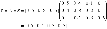 这是根据最大最小运算得到的,还需作归一化处理。因为0.5+0.4+0.3+0.3=1.5,用1.5除各项得到 [0.330.27 0.20 0.20]。模糊综合评判的结果,认为图像、音响、价格都很好的占比重最大,达33%。
