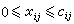 (3)调整可行流,即在增广链的各边上,属正向边加上一个修正量ε,属反向边减去一个修正量ε,即xij+εj,xji-εj。εj值由下式决定:当xij<cij时,