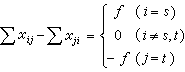 当物质流或信息流通过给定的网络时(图1),在流过每条边的流量xij不超过该边允许通过的流量cij的条件下,求出从发点s向收点t输出的最大流量f,即在满足