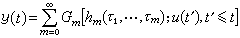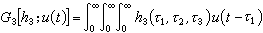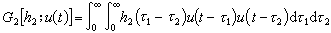 式中y(t)是系统的响应;Gm(m=0,1,2,…)是一组泛函;当系统的激励u(t)是正态白噪声时,Gm是正交的;hm(τ1,…,τm)称为m 阶维纳核。前几阶维纳核hm满足下列等式: