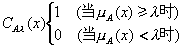 为峎 的λ水平截集。取模糊集峎 的λ水平截集Aλ,就是将隶属函数转化为特征函数: