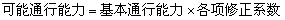 (2)可能通行能力:在现实的道路、交通状态下的通行能力,它是在基本通行能力的基础上,根据道路、交通的现实状态相对于理想状态的差别加以修正而得,即: