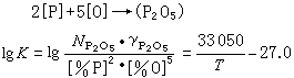 1600℃时,K2=1.7×108或 2[P]+5[O]+4(CaO)─→(4CaO·P2O5) (3)