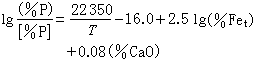 式中(%P)、(%CaO)、(%Fet)分别代表渣中磷含量、氧化钙含量和全铁含量(重量百分数);[%P]是钢中磷含量(重量百分数);T 是绝对温度。