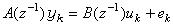 是算子多项式,它们的系数是需要通过估计来求出的未知数;z-1是单位延迟算子;{ek}是误差序列,它是零均值平稳相关噪声序列。为了进行广义最小二乘估计可以从形式上把ek变换成