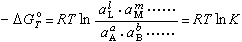 ʽÖÐΔGŒGÊÇζÈΪTʱ±ê×¼×ÔÓÉìʱ仯£¬a¦¡£¬aB£¬¡¡£¬aL£¬aM¡¡·Ö±ðÊÇA£¬B£¬¡¡L£¬M£¬¡¡µÄ»î¶È;K½Ð×÷ƽºâ³£Êý¡£Òò´Ë£¬ÖªµÀÁËΔGŒG¼°·´Ó¦ÎïµÄ»î¶È£¬±ã¿É¼ÆËã·´Ó¦²úÎïµÄ»î¶È£¬´Ó¶øÖªµÀ¹ý³Ì½øÐеij̶ȡ£»î¶ÈaÒ²³ÆÎªÓÐЧŨ¶È£ºai£½γixi (31)