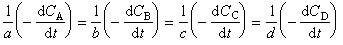 为例,如果体系的总体积不变,则反应物减少量和产物生成量与方程式中计量比a、b、c、d 的关系为-dCΑ∶-dCB∶dCC∶dCD =a∶b∶c∶d