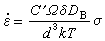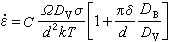 其中C为系数,Ω为原子体积,k为玻尔兹曼常数。如果原子流动依靠晶界扩散,即Coble模型扩散,则有如下关系: