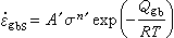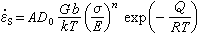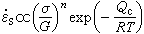 G为切变模量,R为气体常数,n为指数,Qc为蠕变激活能,它的数值与金属中的扩散激活能相当。综合分析大量实验结果可得到以下第Ⅱ阶段蠕变速率的经验公式: