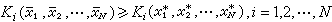 (2)运用决策人的偏好从中选择最优折衷解。在 N人对策(见对策论)中,若各决策人之间具有一定合作性,那么这种多人对策问题就接近于“按照协商结果的”单人多目标最优问题,可应用帕雷托最优概念求解。对一般N人对策问题,设xi和ki分别为第i个决策人的决策和目标函数,则称一组决策