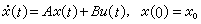 式中x(t)为状态向量,u(t)为控制向量,A和B是由被控对象的结构和参数所决定的系数矩阵(见状态空间法)。