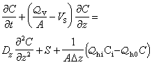 目前常见的一维河流水质模式是河水中的溶解氧模式。在这种情况下,S(C,x,t)应该包括:含碳有机化合物和氨氮的耗氧过程,大气的复氧过程,水生植物的光合作用和呼吸作用过程等。假定河流是稳定态,则