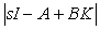 。极点配置问题就归结为对于指定的 n个期望极点s1,s2,…,sn(n是系统的维数)确定一个适当的反馈增益矩阵K,使下式成立: