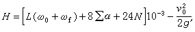 式中H为计算峰高(米);L为车辆从峰顶(峰顶平台和加速坡的变坡点)溜至难行线计算停车点的距离(米);ω0为溜车不利条件下的难行车的单位基本阻力(千克力/吨); ωf为溜车不利条件下难行车的单位风阻力(千克力/吨);∑ɑ为L范围内曲线转向角度数之和;8为每度转向角的曲线附加阻力能高(毫米/度);N为L范围内的道岔数;24为每组道岔的附加阻力能高(毫米/组);v0为峰顶推送速度(米/秒); g′为考虑车辆转动惯量影响的车辆重力加速度(米/秒2)。