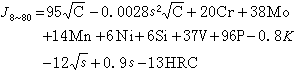 近年来,利用工业上大量积累的Jominy曲线实验数据,运用数理统计方法建立了钢中所含元素与J曲线和硬度(HRC)分布的关系,归纳出如下公式: