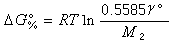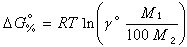 有色金属的熔体多采用 1%摩尔浓度溶液的标准态。两种1%浓度溶液的标准溶解自由焓的相互转换关系式为: