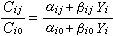 式中Cij为i省j类消费支出的消费函数,αij、βij为根据以往统计数据所得的各类消费函数的系数,Yi为i省的国民收入。再计算总消费函数
