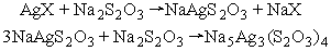 硫代硫酸盐能与卤化银起作用生成能溶于水的络盐,化学反应如下式: