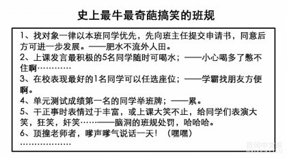 本文包括史上最奇葩、最搞笑班规、小学最牛班规、中学最牛班规、大学最牛班规、最牛班规的思考等。