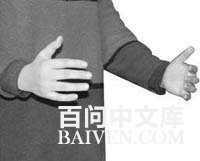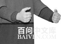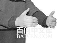 4、双手除拇指外,其余四个指头的最前端的关节弯曲成90度,同时伴随口中念出“美”字或心中默念“美”字;