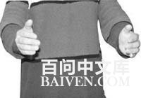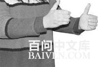 6、双手除拇指外,其余四个指头紧握拳,同时口中念出“福”字或心中默念“福”字。念完“福”字后,双手迅速向前推出5~10厘米。