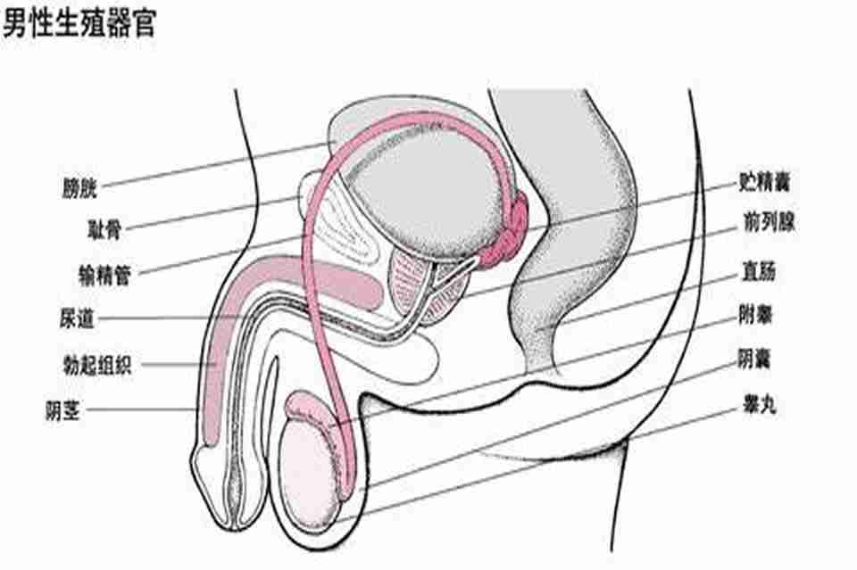 男性生殖器官分为内、外两部分。暴露在体外的部分称为外生殖器官,包括阴阜、阴茎、阴囊;睾丸、附睾、精索、输精管、前列腺、精囊腺等称内生殖器官。