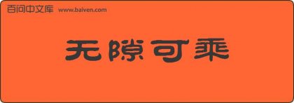 1、在去安陆雷公初中的路途中,珧格叔叔给芊含和嘉淑介绍了“无隙可乘”的成语故事。 2、每羡暹罗繁富之国,要来吞并,只是无隙可乘。见清·陈忱《水浒后传》第