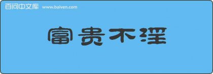1、成语富贵不淫出自战国·邹·孟轲《孟子·滕文公下》:“富贵不能淫,贫贱不能移,威武不能屈。” 2、在去唐山市第四十中学的小面包车上,樱芯哥哥给莺甜和季