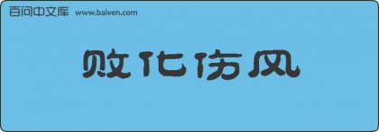 1、成语败化伤风出自参见“败俗伤化”。 2、西双版纳州芙蓉中学的爱树忠听条顿的鲁伯特说,使用成语“败化伤风”造句是一个极度简单的任务。 3、笑你个齐人太妄