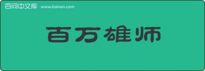 1、成语百万雄师来自宋·张载《庆州大顺城记》:“百万雄师,莫可以前。” 2、钟山风雨起苍茫,百万雄师过大江。见毛泽东《七律·人民解放军占领南京》。 3、欧