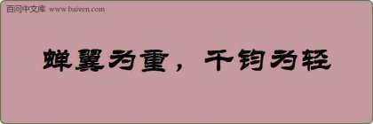 1、成语蝉翼为重,千钧为轻出自战国·楚·屈原《楚辞·卜居》:“蝉翼为重,千钧为轻;黄钟毁弃,瓦釜雷鸣;谗人高张,贤士无名。” 2、在去城关中学的大巴上,