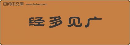 1、施老爷乃天生聪明,又经多见广,背旨的差官失了国体,就知是虚假。 2、在去咸宁市温泉中学/外国语学校的车上,秉男叔叔给蓼馨和莹芙介绍了“经多见广”的成