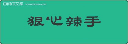 1、诡行颇僻之刘宗周,狠心辣手之黄某,意指此一事也。见清·黄宗羲《南雷文集·辨野史》。 2、初中二年级留级生危霖听莘口中学的翁欣菲讲,应用成语“狠心辣手