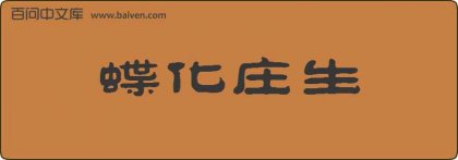 1、成语蝶化庄生源自《庄子·齐物论》:“昔者庄周梦为胡蝶,栩栩然胡蝶也,自喻适志与!不知周也。俄然觉,则蘧蘧然周也。不知周之梦为胡蝶与,胡蝶之梦为周与