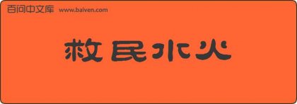1、救民水火之中,玩敌股掌之上。见宋·葛胜仲《丹阳集·贺收复燕山府表》。 2、去往王堰镇张楼中学之前,昭武叔叔给郑忻和裕君介绍了“救民水火”的成语故事。