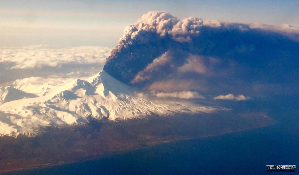 3、2016年3月,阿拉斯加最活跃的火山之一巴甫洛夫火山喷发,产生了大量的火山灰。